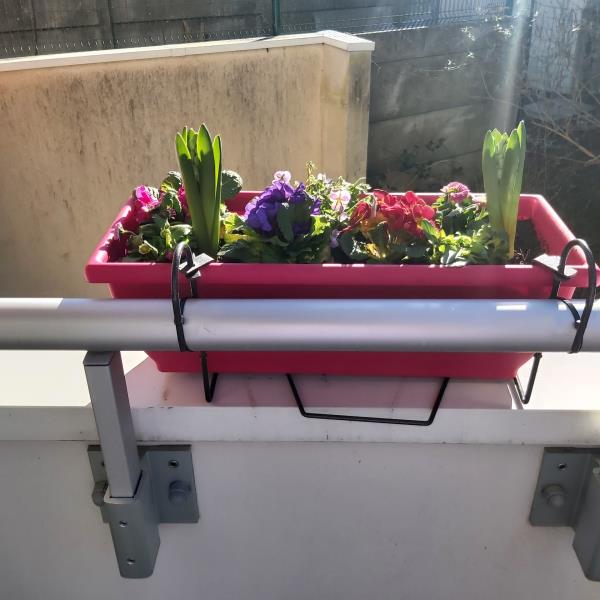 En attendant que les fleurs embellissent les jardins de la résidence, l'animatrice a commencé à décorer le balcon de la salle de vie.