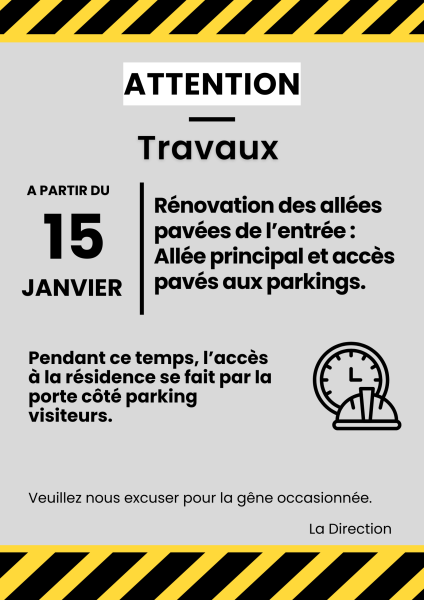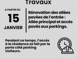 A partir de ce jeudi 15 janvier, nous rénovons les allées pavées de l'accueil de notre résidence.