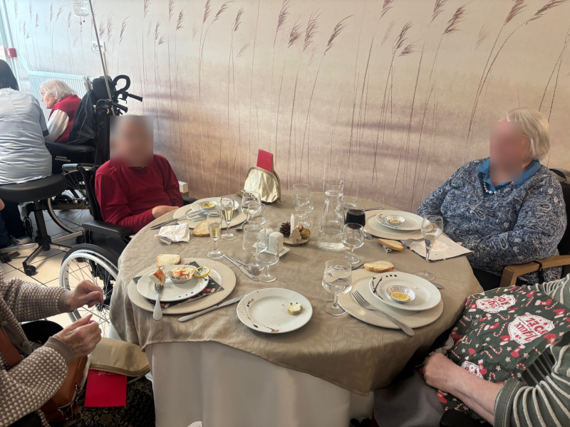 De plus, cette année, notre résidence a eu l'honneur d'accueillir 20 invités surprises, venus fêter Noël en famille avec l'une de nos résidentes. Cette belle initiative a permis à notre résidente de partager ce moment privilégié avec ses proches.