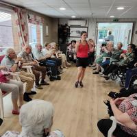 Publiée le 08/09/2024Pour fêter les anniversaires de nos résidents nés au mois d'Août, nous avons reçu aux Amandines le groupe JBN Family pour une après-midi musicale. La chanteuse était accompagnée de 2 musiciens : l'un au synthétiseur et le second à la batterie. Ils ont repris de belles chansons pour le [...] Lire la suite