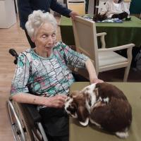 Publiée le 28/07/2024Mercredi, Adrien est venu rendre visite à nos résidents de "chez Valérianne" avec ses petits animaux de la ferme. Les sourires sur les visages de nos résidents faisaient plaisir à voir. Ils étaient très intéressés par la présence des lapins, des poules qui gambadaient sur les tables. [...] Lire la suite