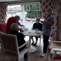 Publiée le 25/04/2021Chaque jour, l'équipe de cuisine de la résidence prépare des pâtisseries maison. Tartelettes aux fruits, forêt noire, moka... font plaisir aux papilles des résidents ! Lire la suite