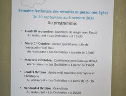 Au programme de cette semaine : spectacle de magie avec Pascal, ateliers sportifs avec Julie, conférence avec Damien Koska, après-midi musical avec Sylvie et Christophe et pour clôturer la semaine grand loto.