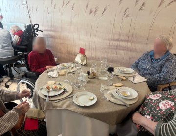 Le repas de fête, préparé par nos équipes de cuisine, a rencontré un franc succès. Élaboré avec des produits de grande qualité et un soin particulier apporté à la présentation, il a ravi les papilles des résidents et de leurs proches, mettant en lumière le professionnalisme et l’engagement de nos cuisiniers.