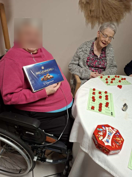 Chaque mois, notre résidence organise un grand loto, toujours très attendu par nos résidents. À l’approche du mois de décembre et des fêtes de fin d’année, nous avons souhaité marquer l’événement en proposant des cadeaux gourmands. Ainsi, les gagnants ont pu choisir une jolie boîte de chocolats, de quoi apporter douceur et plaisir à tous les amateurs de gourmandises et contribuer à une ambiance chaleureuse et festive.