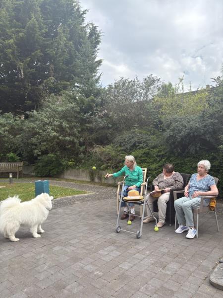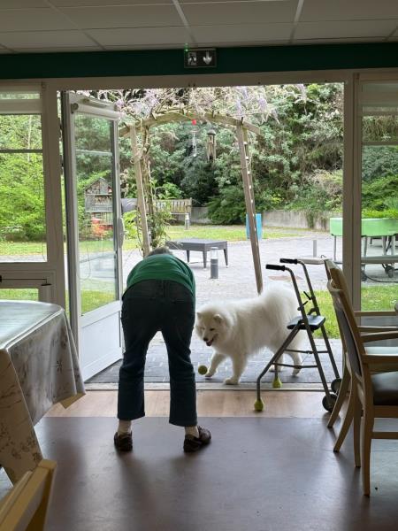 Notre ergothérapeute Lucie nous a proposé, avec beaucoup de bienveillance, de participer à une séance de médiation animale en compagnie de son fidèle compagnon UMI. Cette initiative offre un moment privilégié, à la fois apaisant et stimulant, favorisant le bien-être de nos résidents chez Valériane. Grâce à la présence d’UMI, cette expérience permet de créer un lien différent, propice à l’expression des émotions et au développement des capacités relationnelles, dans un cadre chaleureux et sécurisant.